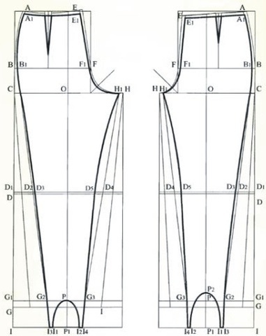 конструкции брюк, но с некоторыми изменениями, а именно: объемы изделия